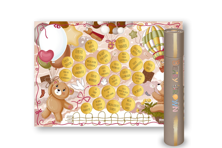 De Milestone Krasposters zijn niet voor niets onder anderen bekroond als origineel kraamcadeau voor een jongen. Maar soms ben je gewoon op zoek naar een goedkoper cadeautje, bijvoorbeeld omdat je al een geboortecadeau hebt gegeven of een kraammand hebt gemaakt als kraam cadeau waar je nog wat leuke spulletjes in wilt doen. Dan is ons budget baby geboortecadeau voor een jongen de perfecte oplossing. Bekijk dan snel even de A4 versie van de mijlpaalposters. Goedkoper, kleiner en verzonden als brievenbus kraamcadeau.
